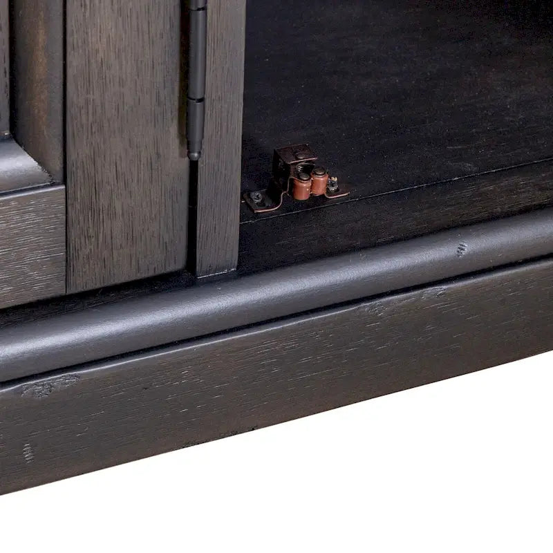 Americana Farmhouse evokes a style unconstrained and intended to be personal with an authentic craftsman flair. A perfect piece for any room in the house. Features three full extension felt lined drawers, four framed doors with beveled edge and one adjustable shelf behind doors. Top is finished in a dusty taupe and base is a weathered black.