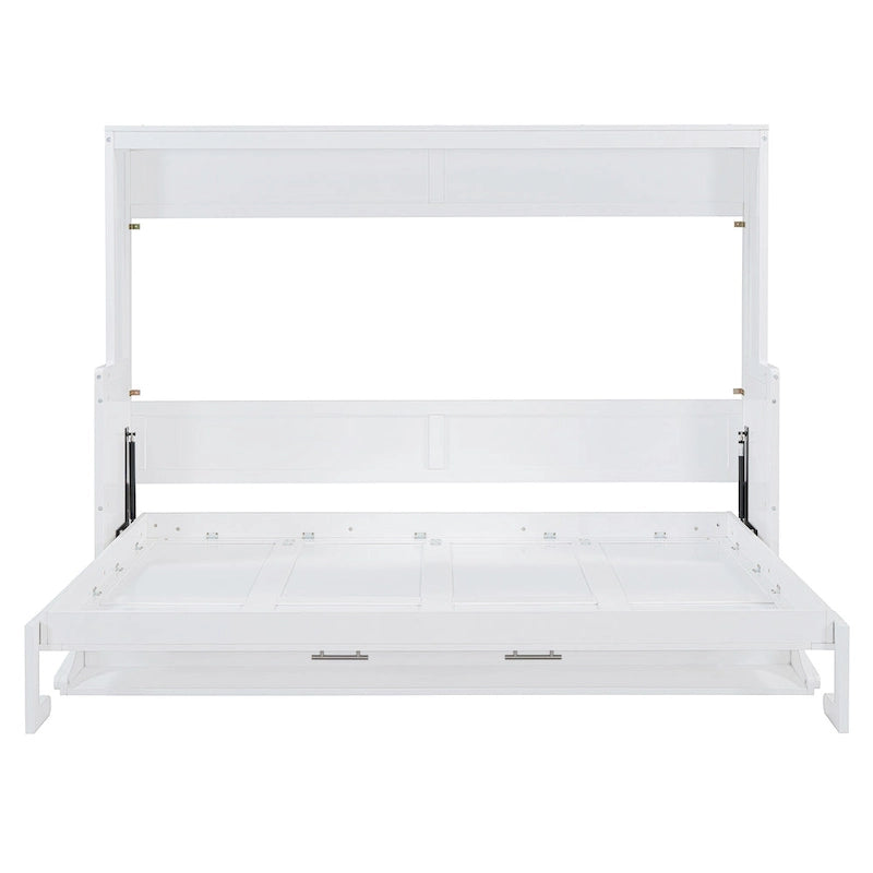 - Space-Saving Design: This Full/Queen Wall Murphy bed features an innovative folding mechanism that seamlessly combines a bed and desk. Equipped with hydraulic hinges, the desk automatically folds away when the bed is pulled down, maximizing space.