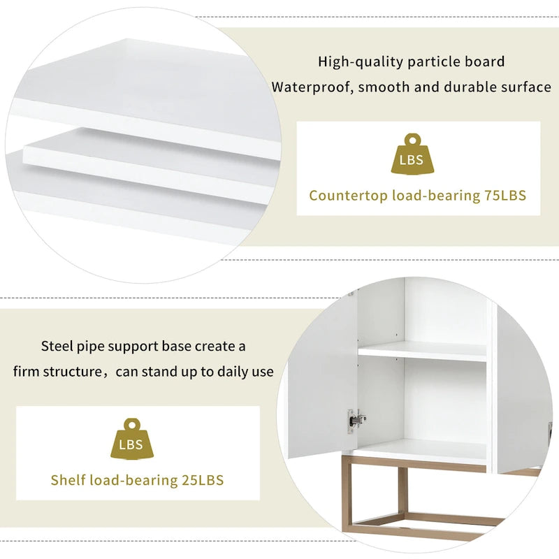 The thoughtful countertop fence design allows you to use the countertop more safely. The internal three shelves provide enough storage space, the left single shelf can be adjusted to three heights as well or users can remove it if need. And the right two shelves divide the cabinet into three storage spaces. can be used to store small appliances, dishes, glassware, towels, wine, and anything else you have in mind.