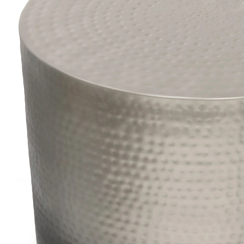 The Kacy Large Metal Accent Table provides a great finishing touch to virtually any space. Crafted from iron, the table features a distinctive textured finish. The table has a unique look and can be used as an accent piece in any room. Use it as an end table by a couch or chair or in the bedroom as a side table.