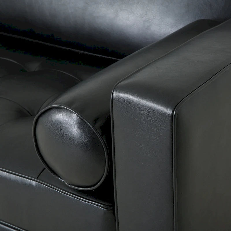 BOLSTER PILLOWS: This sofa includes two matching rolled accent pillows, giving this piece both extra comfort and a boost of style. These give an illusion of scrolled arms if placed properly or they can be removed for an edgier look.