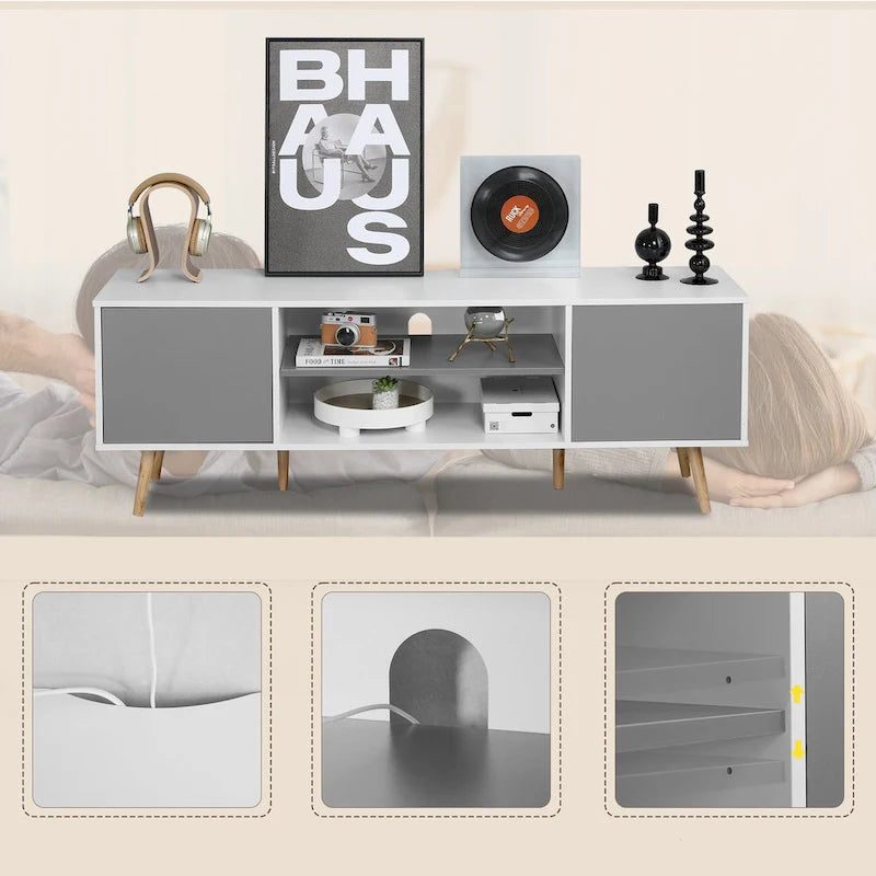 AVAWING Mid-Century Modern TV Stand for 60 TV with Storage and Open Shelf
