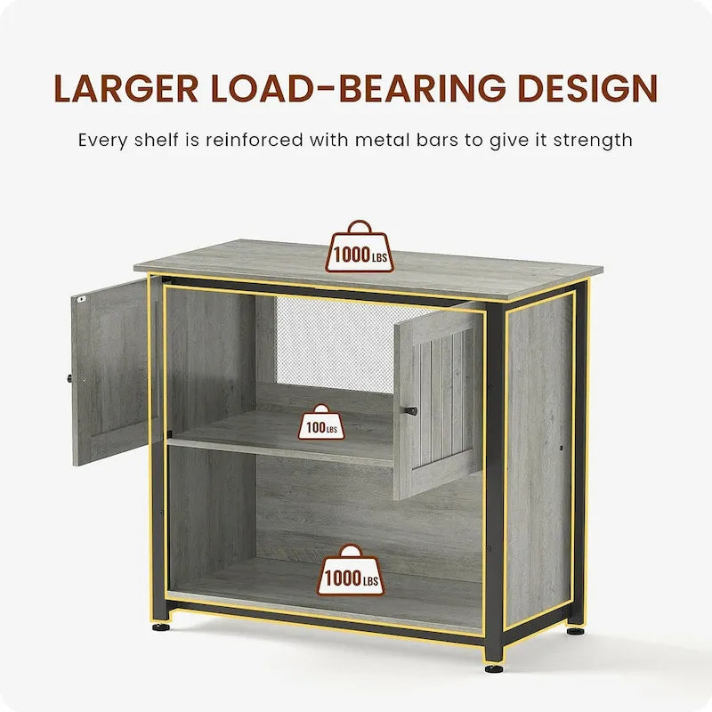 Convenient Storage CabinetThe spacious storage cabinet in the middle of the stand, which can hold up to 100LBS, allows you to store fish accessories: fish food, fish nets, gravel cleaner, water conditioner, etc. This design not only allows easy access to what you need but also maximizes limited space and keeps the aquarium area clean and tidy